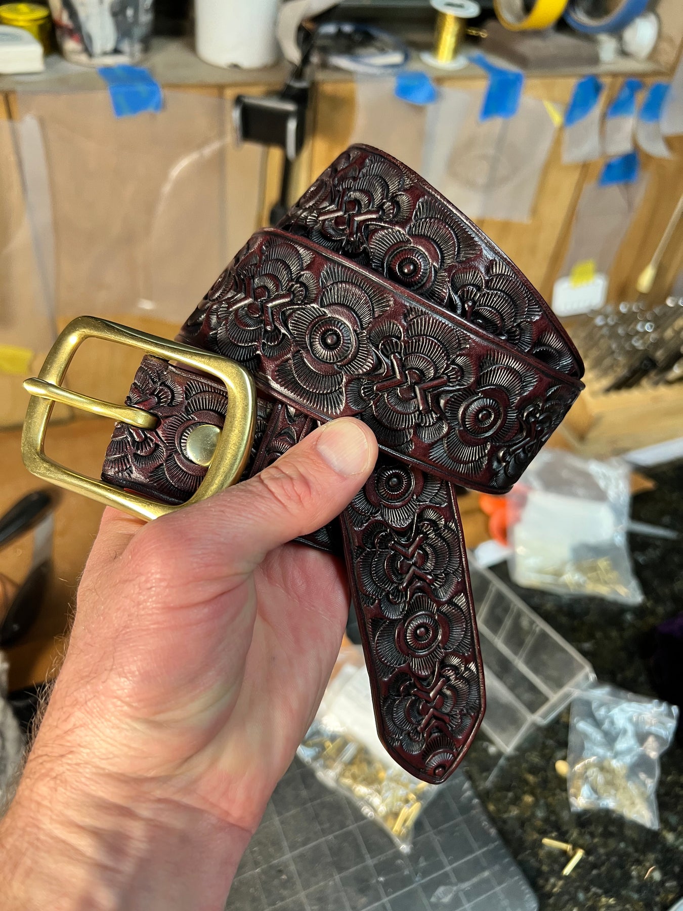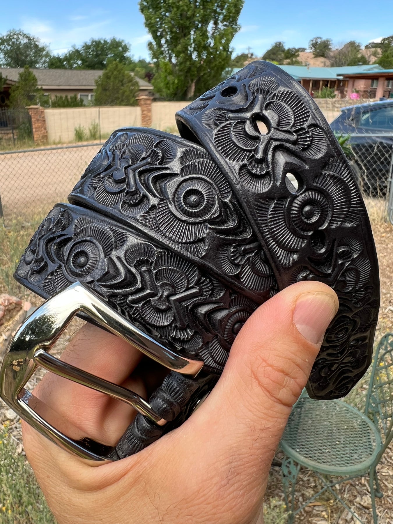 The Rosette Belt is hand stamped using traditional saddle tools, no presses or machines are used.